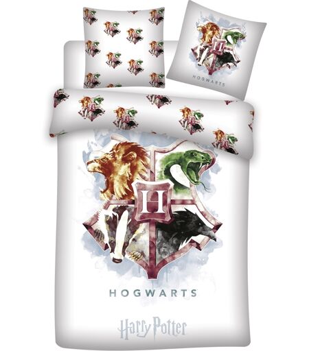 Licens Harry Potter sengetøj - 140x200 cm - Flot motiv af Hogwarts våbenskjold - Sengesæt vendbart - Dynebetræk i 100% bomuld