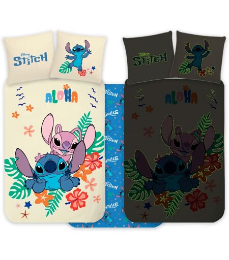 Licens Stitch og Angel sengetøj - 100% blødt bomuld - Vendbart selvlysende junior sengesæt - 100x140 cm sengelinned