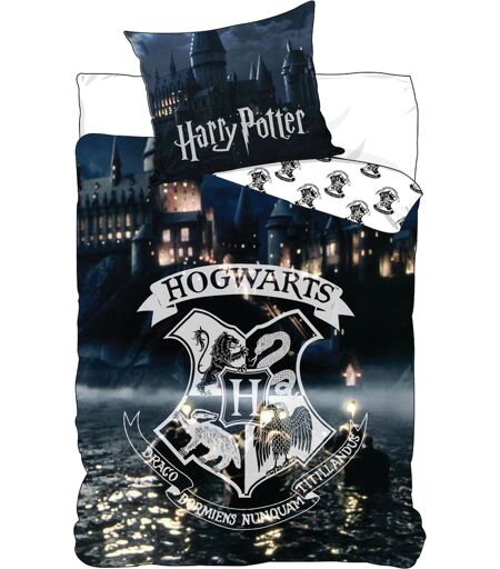 Licens Harry Potter sengetøj - 140x200 cm - Hogwarts Logo - Glow in the dark sengetøj - 100% bomuld