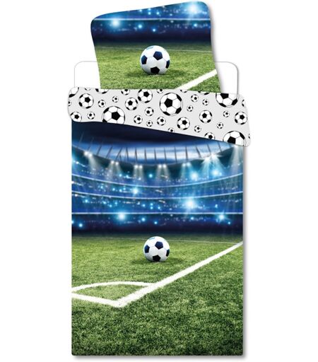 Licens Fodbold sengetøj - 140x200 cm - Stadion og fodbold motiv - Dynebetræk med vendbart design - 100% bomulds sengesæt