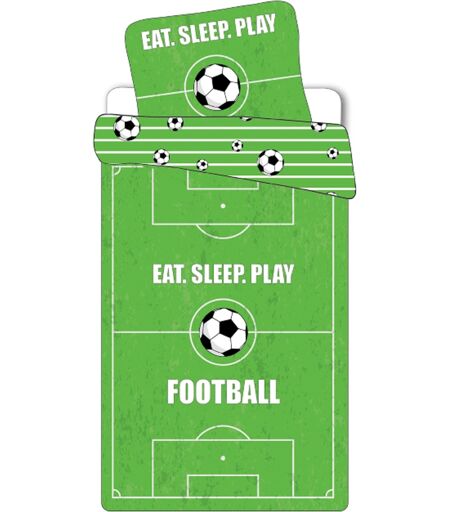 Licens Fodbold sengetøj - 140x200 cm - Fodbold bane og fodbolde - Dynebetræk med vendbart design - 100% bomulds sengesæt
