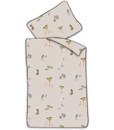 By Mats Baby sengetøj 70x100 cm - Beige sengesæt med safaridyr - 100% blødt bomulds sengelinned