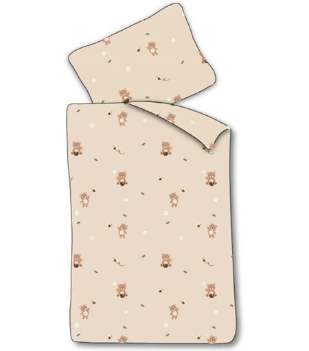 By Mats Junior sengetøj 100x140 cm - Beige sengesæt med bamser - 100% blødt bomulds sengelinned