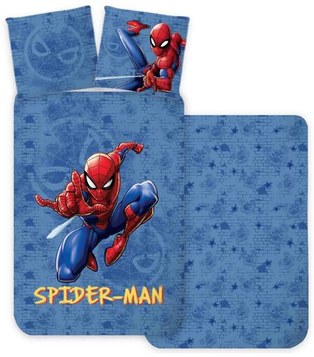 Licens Spiderman sengetøj 140x200 cm - Vendbart sengesæt med Spiderman - 100% blødt bomulds sengelinned