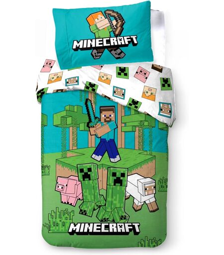 Licens Minecraft sengetøj - Vendbart design med motiv af creeper og pigs - Jungle Explore - 140x200 cm - 100% bomulds sengelinned