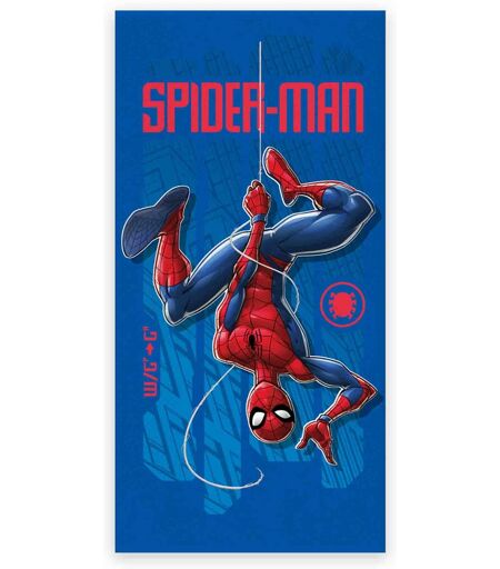 Licens Spiderman håndklæde - 70x140 cm - 100% bomuld - Blåt, blødt badehåndklæde med Spiderman