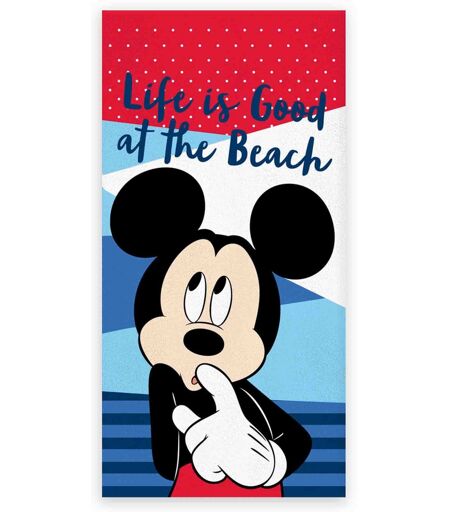 Licens Mickey Mouse håndklæde - 70x140 cm - 100% bomuld - Life Is Good At The Beach - Blødt badehåndklæde med en grøn traktor