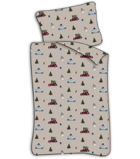 By Mats Baby julesengetøj 70x100 cm - Jule sengesæt med biler og juletræer - Christmas Drive - 100% blødt bomulds sengelinned
