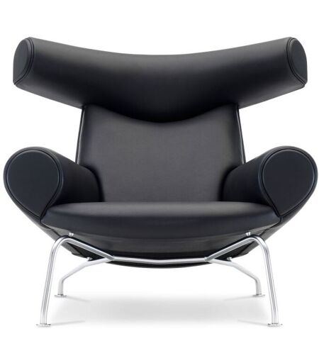 Fredericia Wegner Ox Chair - Sort Primo 88 Læder / Børstet Krom