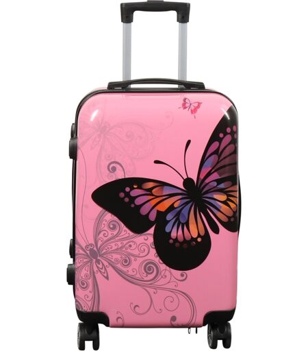 Borg Living Kabine kuffert - Hardcase letvægt kuffert - Trolley med motiv - Sommerfugl lyserød