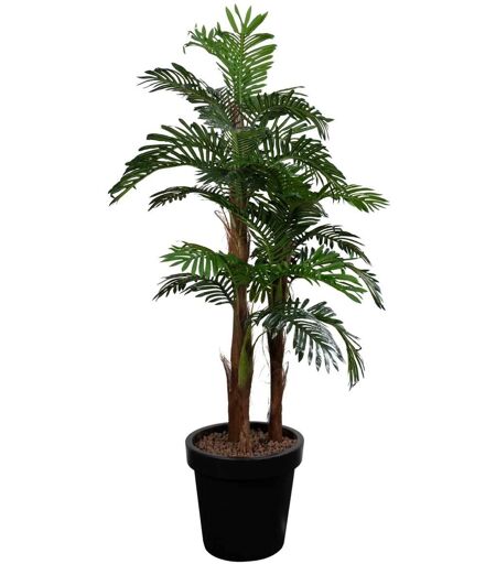 Type: Areca palme - kunstig gulvplante Farve: Grøn Højde: 185 cm inden plantning på højeste plante Diameter: 110 cm Materiale: Plastik Vedligeholdelse: Kan let vedligeholdes med en fugtig klud Leveres i: Kasse Naturtro og vedligeholdelsesfri skønhed Denne kunstige Areca palme er din mulighed for at bringe en smule tropisk atmosfære ind i dit hjem eller på kontoret uden bekymringer om vedligeholdelse. Denne naturtro plante er flot og fyldig, skaber liv i ethvert rum og passer perfekt ind i en stue, entre eller hall. Med en højde på 185 cm og en diameter på 110 cm er dette Areca palmetræ iøjnefaldende og tilføjer et eksotisk præg til din indretning.Plastik som materiale Plastik er et yderst holdbart materiale, der kan modstå daglig brug og slid. Det er også vandafvisende, hvilket gør det ideelt til kunstige planter, da de ikke vil rådne eller blegne i solen. Derudover er det let at rengøre - blot tør af med en fugtig klud.Naturtro udseende Denne kunstige Areca-palme er designet til at ligne en ægte palme med dens livlige grønne farve og detaljerede blade. Dette bidrager til at skabe en rolig og afslappende atmosfære i dit rum.Vedligeholdelsesfri En af de største fordele ved denne kunstige Areca palme er, at den ikke kræver nogen form for vedligeholdelse. Du behøver ikke at vande den, beskære den eller bekymre dig om, hvor meget lys den får. Dette gør den ideel for dem, der ønsker det grønne look uden besvær. Forestil dig at sidde i din stue med denne prægtige Areca palme, der tilføjer et strejf af tropisk skønhed. Du kan nyde dens naturtro udseende og følelsen af at være omgivet af naturen, alt sammen uden vedligeholdelsesbesvær. Overvej også at kigge i vores kategori Kunstige planter. ...