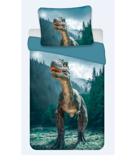 Licens Dinosaur sengetøj - 140x200 cm - Børnesengetøj med raptor - Vendbart dynebetræk - Dino sengesæt i 100% blød bomuld