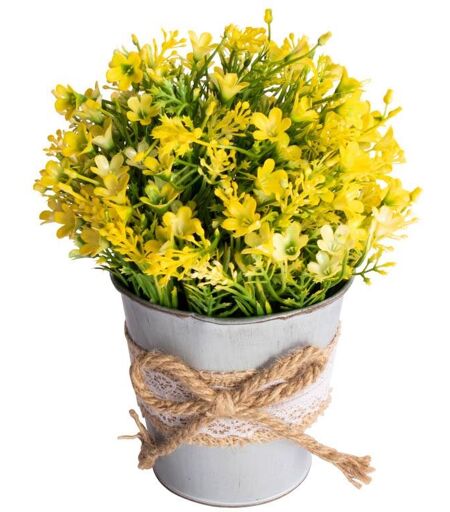 Type: Campanula - kunstig blomst Farve: Gul Højde: 21 cm Diameter: 16 cm Materiale: Plast Potte: Zink Vedligeholdelse: Kan let vedligeholdes med en fugtig klud Naturtro og dekorativt potteplante Blomsten som ikke visner og som ikke kræver "grønne fingre". Kunstige planter er med til at give hjemmet et opløftende og frisk pust. Denne plante vil passe ind i de fleste hjem, fordi den er så enkel, lille og samtidig tilføjer så meget liv. Den findes i flere forskellige farver og kan sagtens kombineres med hinanden, for at give et flot farvespil.Brugbart alle steder Kunstige planter er meget populære, da de ikke kræver pleje og vedligeholdelse og samtidig er allergivenlige. Kunstige planter er desuden yderst velegnede til kontorarealer, restauranter, sygehuse, plejehjem og institutioner - alle steder hvor den friske grønne farve, kan være med til at give liv til rummet uden den store vedligeholdelse. Nem vedligeholdelse En af de største fordele ved kunstige planter er, at de ikke kræver nogen vedligeholdelse. Du behøver ikke at vande dem, beskære dem eller bekymre dig om lysforholdene. Dette gør dem ideelle til travle husholdninger, kontorer eller offentlige rum, hvor friske planter kan være svære at vedligeholde. Vi kan anbefale, at du også tager et kig på kategorienIndretning. ...