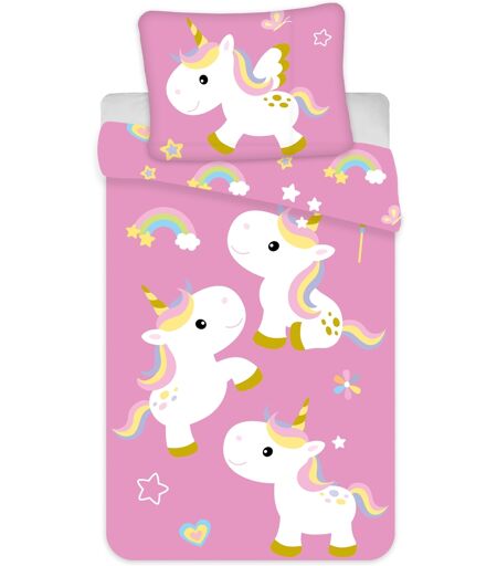 Licens Enhjørning sengetøj - 150x210 cm - Unicorn børnesengetøj - 2 i 1 design - Sengesæt i 100% bomuld