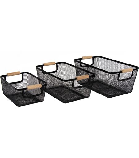 Home-tex Trådkurve sæt - 3 stk. sorte trådkurve med træhåndtag - Moderne opbevaringskurve