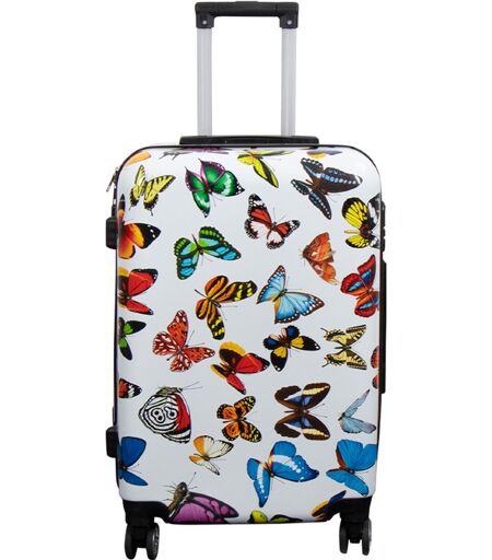 Borg Living Kuffert - Hardcase kuffert - Str. Medium - Kuffert med motiv - Hvid med sommerfugle print - Eksklusiv letvægt rejsekuffert