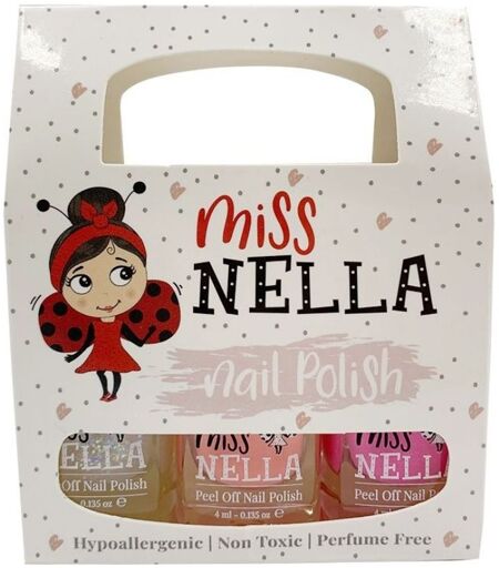 Miss NELLA Nail Polish Kit - 03 er en sammensætning af tre smukke neglelakker. Neglelakkerne er udviklet specielt til børn og med disse fantastiske lakker, kan man nu give sine børn lov til at få fine, lakerede negle ligesom sin mor. De er 100% fri for farlige kemikalier, miljøvenlig, duftfri og vandbaseret, så man kan nu give sine børn lov til at pynte sig med god samvittighed. Ikke nok med det, så kan lakken nemt fjernes ved at pille den af med fingrene, helt uden brug af neglelakfjerner. Med Miss NELLA Nail Polish får du neglelak, der er sjovt at påføre og en leg for børn at fjerne igen. Udforsk Miss NELLAs neglelak univers her. Sættet indeholder: 1 stk. Confetti Clouds 4 ml 1 stk. Peach Slushice 4 ml 1 stk. Watermelon Popsicle 4 ml Fordele: Neglelak til børn Indeholder ingen skadelige kemikalier Miljøvenlig Duftfri Indeholder IKKE toluen, formaldehyd eller DBP Vandbaseret Kan pilles af med fingrene Nem at påføre Anvendelse: Påføres på tørre negle Påfør neglelakken og lad den tørre Fjern lakken igen ved at pille det af med fingrene ...