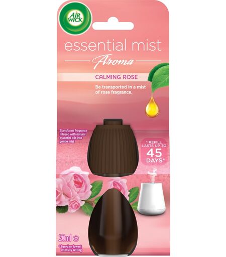 Velduftende æterisk olie med en dejlig og beroligende duft af roserDenne duftolie refill passer til diffuseren Essential Mist fra Air Wick. Den æteriske olie bliver i diffuseren til en let damp, som omslutter rummet med din yndlingsduft og giver dig en indbydende duftoplevelse og en behagelig sanseoplevelse. Med Calming Rose får du en refill med en dejlig og beroligende rosenduft.Duft: Calming RoseIndhold: 20 mlRefillen giver op til 45 dages duft ...