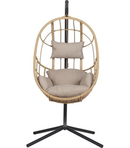 Innovativ hængestol inkl. hynder Fremragende redskab til haven, når du har brug for afslapning. Denne hængestol er fremstillet i flot rattan flet, mens foden er fremstillet i metal. Leveres inklusiv hynder, så din siddekomfort bliver helt sublim. Et kreativt, udendørs redskab, som helt sikkert vil gavne henover sommersæsonen. Brand: Outfit Materialer: Metal, rattan og polyester Siddehøjde: 56 cm Sædebredde: 82 cm Sædedybde: 63 cm Kurvmål (BxDxH): 83x63x119 cm. Fodmål/totalmål (BxDxH): 128x128x190 cm. Maks. belastning: 120 kg Inkl. hynder Vægt: 23,7 kg. ...