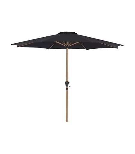 Klassisk parasol med teak-look på stangen Klassisk haveparasol i sort, der har et enkelt design, som passer godt ind i enhver have og terrasse. Parasollen er fremstillet i kraftigt polyester, med metalribber og en aluminiumsstang der sikrer en god styrke, men samtidig en lav vægt, der gør det nemt at flytte parasollen. Parasollen har en god størrelse på Ø3 m. og er derudover med krank. Farve: Sort Stang; Folie med teak-look Materialer: Aluminium, Polyester Dimensioner: Ø3 m x H2,46 m Rørdiameter: Ø48 mm 8 metal ribs Stof: 180g/m2 polyester Fri for PFAS ...