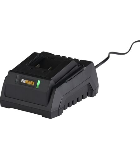 Probuilder 18V opladeren er en effektiv og enkel løsning til opladning af dine 18V Li-ion batterier. Den passer til både 2,0 Ah og 4,0 Ah batterier og har en opladningsstrøm på 2,3 ampere, hvilket sikrer en stabil opladning uden overophedning. Opladningstiden er cirka 60 minutter for et 2,0 Ah batteri og cirka 120 minutter for et 4,0 Ah batteri. Opladeren er udstyret med en 2 meter lang ledning, så du har god rækkevidde fra stikkontakten til opladningspunktet. Denne model understøtter ikke hurtigopladning og kan ikke lade to batterier ad gangen. De vigtigste fordele: Passer til alle 18V Probuilder Li-ion batterier Stabil opladning med 2,3A strømstyrke Lader både 2,0 Ah og 4,0 Ah batterier Ledningslængde på 2 meter Robust og kompakt design Den oplader du skal bruge, når driftssikkerhed er vigtig Med Probuilder opladeren får du en solid base til dine batteridrevne maskiner. Den er nem at bruge, pålidelig og holder dine batterier klar til næste opgave. Specifikationer: Farve: Sort/grå Materiale: Nylon Input: 100–240V – 50/60 Hz – 60W Opladningsstrøm: 2,3A Opladningstid: ca. 60 min. (2,0 Ah), ca. 120 min. (4,0 Ah) Ledningslængde: 2 meter Dobbelt lader: Nej Hurtig ladning: Nej Mål (BxHxD): 11,2 x 21 x 9 cm Vægt: 0,401 kg ...