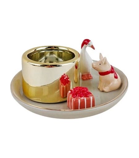 Flot & unik lysestage Denne lysestage er en perfekt tilføjelse til din julepynt. Med sit flotte og unikke juledesign, giver den ikke kun et pænt udtryk, den byder også julen velkommen og skaber en dejlig julestemning. Lysestagen har en smuk gylden stage, omringet af klassiske julefigurer, som som er med til at skabe den ægte julestemning. Farve: Hvid Dimensioner (HxDia.): 4 x 12 cm Materiale: Dolomit Lysdiameter: 4,96 cm ...
