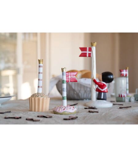 Ideel til fødselsdagsfejring og festlige anledninger Fejr fødselsdage og særlige anledninger med disse søde flag. Flagenes fødder er en cupcake eller donut. Perfekt til den søde tand. Indhold: 1 stk. flag med cupcake bund og 1 stk. flag med donut bund Materiale: Polyresin Dimensioner (HxØ): 12,5 x 10 cm ...