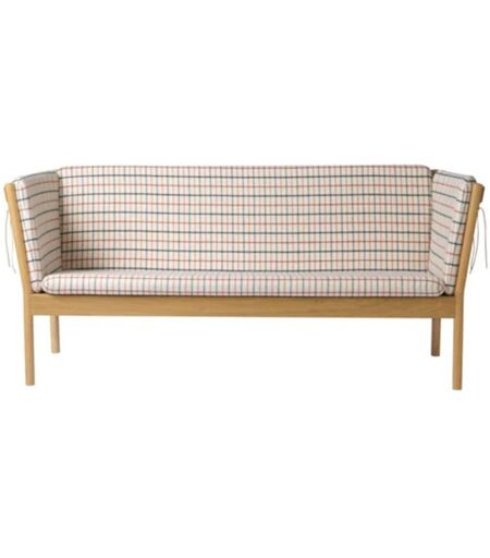 FDB Møbler J149 3 pers. Sofa Erik Ole Jørgensen L: 189 cm - Eg/Rødternet Hestedækken Designklassikeren J149 er en enkel og smukt udført sofa. Tremmesofaerne J148 og J149 blev møbeldesigneren Erik Ole Jørgensens største succeser, da de blev lanceret i 1970erne. Og succesen giver genklang den dag i dag som en umiddelbart genkendelig designklassiker, hvis kvaliteter er en tidløs repræsentant for dansk møbelarkitektur. At det samtidig er en utrolig komfortabel sofa har naturligvis været med til at fastholde succesen frem i den nye epoke for FDB Møbler. Med en længde på 185 centimeter er den en hyggelig siddeplads for en hel lille familie – eller en herlig plads til en eftermiddagslur. Under alle omstændigheder en sofa, der giver en aura af design- og håndværksmæssig sikkerhed. Designer: Erik Ole Jørgensen Materiale: Den skønne sofa er fremstillet af FSC-certificeret massivt egetræ fra europæiske skove. Uld Rødternet Hestedækken (14) Mål: Bredde: 185 cm Dybde: 70 cm Højde: 80 cm Siddehøjde: 43 cm Sædedybde: 50 cm ...