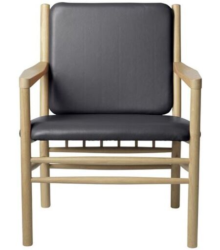 FDB Møbler J147 Lænestol Erik Ole Jørgensen H: 79,5 cm - Eg/Sort Læder Enkelt og miljøbevidst lænestol fra FDB Møbler designet af Erik Ole Jørgensen. Lænestolen er lavet af massivt egetræ med FSC-certificeret træ fra europæiske skove og stoffet er Crisp stof, der er vævet af smukt og stærkt newzealandsk uld og mærket med både Oeko-Tex og EU Ecolabel. Designet er ikke kun miljøbevidst men matcher også med tidens trend med dens flerfarvet tekstiler. Desuden har den gode stretch kvaliteter, en enestående slidstyrke og er naturligt smudsafvisende. Designer: Erik Ole Jørgensen Materiale: Solid egetræ Brun (Semianilin, sort læder) Mål: Højde: 79,2 cm Bredde: 62,9 cm Dybde: 62,7 cm Sædehøjde: 40,9 cm Vægt: 12,7 kg Vedligeholdelse: Aftørring med ren og fugtig klud + Pletfjerningsguide ...
