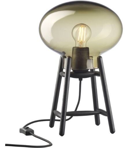 FDB Møbler U4 Hiti Bordlampe m. Sort Ledning H: 22,8 cm - Sortmalet Eg/Røgfarvet Glas