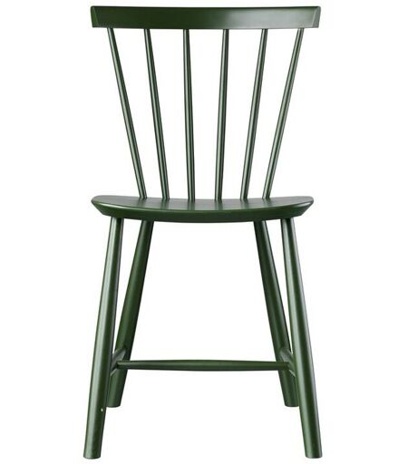 FDB Møbler J46 Poul M. Volther Stol - Flaskegrøn Denne lækre stol fra FDB er designet af Poul M. Volther, hvilket går helt tilbage til 1950. Som designer gik han op i godt håndværk og elskede den enkle forarbejdning af materialerne og tog afstand fra alt, hvad der var var smart. Dette kan også ses på de møbler han lavede, de rene og enkle linjer, gør at de passer ind i et hvert hjem. J46 stolen er den mest populære fra hans arbejde for FDB, det antages at have stået i næsten 200.000 danske hjem. Designer: Poul M. Volther Materiale: Bøg malet Pantone 553C FSC certificeret Mål: H: 80 cm B: 41 cm D: 47 cm Sædehøjde: 45 cm Sædedybde: 38 cm Vedligeholdelse: J46 aftørres med en ren hårdt opvredet klud. ...
