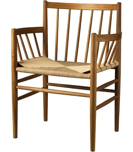 FDB Møbler Stol Jørgen Bækmark J81 Eg/flet - Et smukt fletmøbel, designet i de smukkeste linjer, med armlæn. En spisebordsstol som virkelig formår at markere sig i fællesrummet, og som samler folk. Et møbel som har den optimale komfort, og som også tillader at man bliver siddende lidt længere. Træet er FSC certificeret og er fra europæiske skove. Designer: Jørgen Bækmark Materiale: Røget eg Mål: H: 82 cm B: 65,3 cm D: 53,3 cm ...