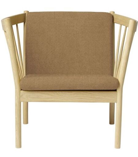 FDB Møbler Erik Ole Jørgensen J146 Lænestol H: 79,5 cm - Eg/Brun Erik Ole Jørgensen tremmelænestol J146 fra FDB – Klassisk dansk design med komfort i fokus. Det er ikke uden grund, at Børge Mogensens elev, Erik Ole Jørgensen, satte sit aftryk på dansk møbelhistorie med tremmelænestolen J146. Designet i 1978 fremstår stolen som et smukt eksempel på klassisk dansk møbelkunst, hvor runde former, enkel funktionalitet og solidt håndværk går hånd i hånd. De brede, buede armlæn inviterer til afslapning og fordybelse, mens samspillet mellem stolens form og hynderne skaber et både indbydende og funktionelt møbel. Erik Ole Jørgensen (1925–2002) havde baggrund som både møbelpolstrer og møbelarkitekt – en kombination, der afspejles i stolens vellykkede balance mellem æstetik, komfort og kvalitet. Hans værker er kendt for at være enkle, funktionelle og skabt til at holde gennem generationer. J146 er ideel som et fast samlingspunkt i stuen – perfekt til læsehjørnet, foran pejsen eller som en ekstra, komfortabel siddeplads ved sofaen. Den klassiske form gør den let at indpasse i både moderne og traditionelle indretninger, mens de naturlige materialer tilfører varme og personlighed. Brug den alene som et markant statement piece eller sammen med tremmesofaen fra samme serie for et gennemført, tidløst udtryk. Designer: Erik Ole Jørgensen Mål: Højde: 79,5 cm Bredde: 86 cm Dybde: 72 cm Sædehøjde: 42,5 cm Sædedybde: 52 cm Sædebredde: 59 cm Materiale: Lakeret egetræ Polstring: Main Line Flax, Camira (70% uld, 30% hør) Vedligeholdelse: Aftørring med ren og fugtig klud ...
