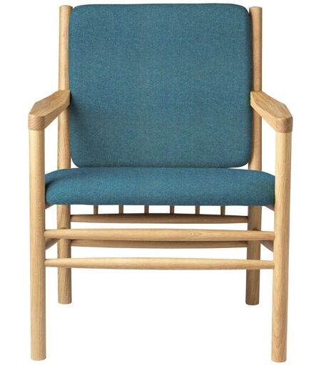 FDB Møbler J147 Lænestol Erik Ole Jørgensen H: 79,5 cm - Eg/Green Enkelt og miljøbevidst lænestol fra FDB Møbler designet af Erik Ole Jørgensen. Lænestolen er lavet af massivt egetræ med FSC-certificeret træ fra europæiske skove og stoffet er Crisp stof, der er vævet af smukt og stærkt newzealandsk uld og mærket med både Oeko-Tex og EU Ecolabel. Designet er ikke kun miljøbevidst men matcher også med tidens trend med dens flerfarvet tekstiler. Desuden har den gode stretch kvaliteter, en enestående slidstyrke og er naturligt smudsafvisende. Designer: Erik Ole Jørgensen Materiale: Solid egetræ Grøn (32) Mål: Højde: 79,2 cm Bredde: 63 cm Dybde: 64 cm Sædehøjde: 42 cm Vægt: 11,6 kg Vedligeholdelse: Aftørring med ren og fugtig klud ...