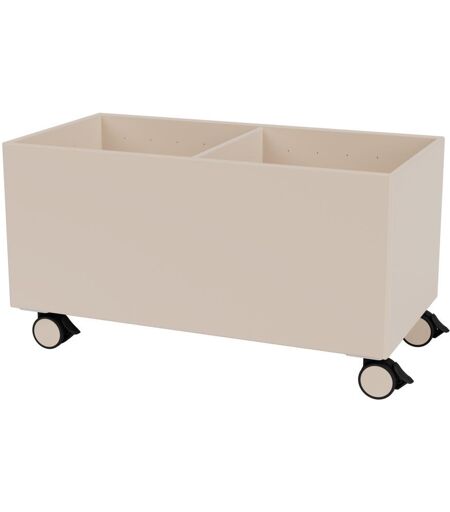 Montana Colour Box III S1162 m. Hjul 69,6x37,8x35,4 cm - 168 Clay Skøn opbevaringskasse med hjul fra Montana. Skab orden og systematik i hjemmet med denne praktiske kasse, som ikke alene er funktionel, men også yderst æstetisk i kraft af dens minimalistiske look og rene linjer. Brug den eksempelvis til at opbevare LP plader, plaider eller som en del af børneværelset, hvor kassen kan holde styr på bamser, biler og klodser. Med opbevaringskassens hjul er det nemt at flytte rundt på sine ting, samtidig med at man kan gøre det til noget sjovt og ikke mindst praktisk, at samle legetøj op. Alle kasser leveres med en løs transparent beskyttelsesplade i bunden. NB: Undgå at spilde vand i bunden af kassen. Planter skal placeres på en vandtæt underkop. Designer: Peter J. Lassen, 2023 Materiale: 12 mm lakeret MDF Mål: B: 69,6 cm H: 37,8 cm D: 35,4 cm Farve: 168 Clay Certificeringer: EU-blomsten Specifikationer: Maks. belastning 40 kg. Vedligeholdelse: Rengøres med en klud hårdt opvredet i rent vand, og eftertørres omgående med en ren, tør klud. Genstridige pletter kan fjernes med dråber af koncentreret opvaskemiddel, og overfladen aftørres herefter med en hårdt opvredet klud. ...