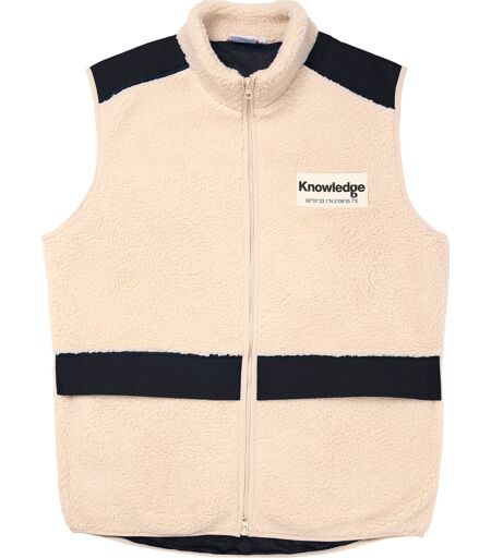 Knowledge Cotton Apparel Men's Teddy Fleece Hood Vest With Rib Stop In Contrast Color White, M