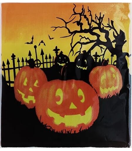 Stemningsfulde servietter med stort Halloween-motiv i klare farver. Pakke med 20 Halloween-servietter i størrelsen 33 x 33 cm. Hver serviet er dekoreret med et stort, flerfarvet motiv, der dækker hele overfladen. Motivet forestiller en kirkegård med lysende græs og et skræmmende træ, som skaber en dramatisk og uhyggelig stemning. Et iøjnefaldende element til borddækning i forbindelse med Halloween i hjemmet, på kontoret eller i butikken. Mængde: 20 stk. Farve: orange. Mål (HxB): 33 x 33 cm ...