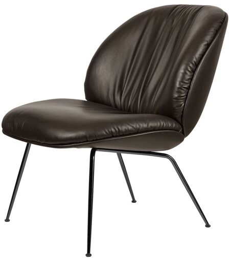 GUBI Beetle Soft Lounge Chair Fully Upholstered - Black Matt Base/Coffee Smooth Leather