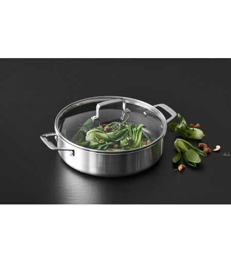 Funktionelt design og innovativ belægning 79NORD Hybrid sautergryden fra Morsø kombinerer klassisk funktionalitet med moderne teknologi. Gryden er fremstillet i 3-ply rustfrit stål med en kerne af aluminium, hvilket sikrer hurtig og jævn varmefordeling – både i bunden og op ad siderne. Det gør gryden energieffektiv og let i brug. Indvendigt er gryden udstyret med en særlig hybridbelægning – en kombination af forhøjet mønster i rustfrit stål og en 2-lags keramisk non-stick-belægning uden PFAS. Det gør den nem at rengøre og ideel til madlavning med minimal brug af fedtstof. Du kan bruge alle typer redskaber, men det anbefales at vælge træ, plast eller silikone for at skåne overfladen yderligere. Håndtag og greb er i støbt stål og kan blive varme under brug. Gryden er egnet til alle varmekilder inkl. induktion, og den tåler ovn – med låg op til 200 °C og uden låg op til 260 °C. Derudover er den velegnet til opvaskemaskine. Diameter: 28 cm Materiale: 3-ply rustfrit stål m. aluminiumkerne Hybridbelægning uden PFAS – keramisk non-stick Ovnfast: 200 °C med låg, 260 °C uden låg Kan vaskes i opvaskemaskine ...