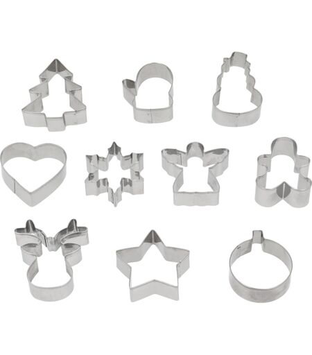 10 forskellige kageudstikkere i rustfrit stål Blomsterbergs kageudstikkersæt med 10 ass. forme i rustfrit stål er ideelt til julebagning og hyggelige stunder i køkkenet. Sættet indeholder 10 glædesspredende motiver: juletræ, snemand, engel, rensdyr, hjerte, julekugle, stjerne, kagemand, snefnug og handske – alle klassiske figurer, der passer perfekt til både småkager, fondant og marcipan. De holdbare stålforme giver skarpe og tydelige udtryk i dit bagværk og tåler opvaskemaskine. En oplagt gaveidé eller supplement til det kreative bagegrej. 10 udstikkere i rustfrit stål Tåler opvaskemaskine Vaskes før første brug ...