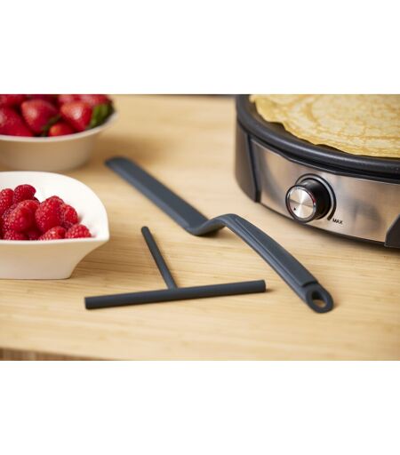 Effektive redskaber til perfekte pandekager Gør pandekagebagningen nem og mere ensartet med dette sæt i grå silikone. Sættet indeholder en 14 cm bred T-spatel, der sikrer jævn fordeling af dejen på panden, så du opnår tynde og ensartede pandekager. Den medfølgende lange palet har et praktisk knæk, som gør det lettere at vende og servere dine pandekager uden at beskadige dem. Uanset om du foretrækker de søde eller de salte varianter, får du her et sæt, der giver kontrol og præcision i processen. T-spatel til jævn fordeling af pandekagedej Lang palet med knæk til nem vending og servering Fremstillet i fleksibel grå silikone T-spatelbredde: 14 cm ...