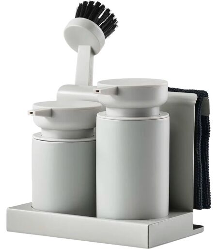 Zone Diish opvaskesæt – gennemtænkt design og kompromisløs funktion Zone Denmark sætter en ny standard for hverdagsluksus i køkkenet med Diish opvaskesættet – en elegant og funktionel løsning, hvor intet er overladt til tilfældighederne. Fra materialevalg til detaljer og proportioner er alt nøje afstemt for at skabe et samlet udtryk, der både ser godt ud og fungerer i praksis. De vigtigste fordele: Sæt med to keramiske dispensere til opvaskemiddel og håndsæbe/sprit Integreret holder til opvaskebørste og karklud Skjult ophæng til karklud – tørrer diskret og praktisk Matchende opvaskebørste i harmonisk farve Aftagelig bundbakke opsamler vand og holder bordet tørt Designet med fokus på æstetik, holdbarhed og funktion Form og funktion i perfekt harmoni Diish-sættet kombinerer strømlinet æstetik med praktiske løsninger, der gør daglig opvask til en mere elegant affære. De keramiske dispensere står stabilt og har en behagelig tyngde, mens bundbakken sørger for, at overskydende vand bliver, hvor det skal – væk fra køkkenbordet. Organiseret og stilfuldt Med Diish får du styr på det hele – uden at det ser rodet ud. Det integrerede ophæng til karkluden gør det nemt at tørre den uden at den er synlig, og den matchende opvaskebørste fuldender det samlede, stilrene udtryk. Materialer: Keramik, plast, tekstil Inkluderer: 2 dispensere, opvaskebørste, karklud, bundbakke Farve: Grå Anvendelse: Til opvask, håndsæbe, sprit og køkkenorganisering ...