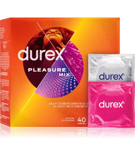 Durex Pleasure Mix, 40 stk., Erotiske sæt til par, Forstærk dine sexoplevelser, og brug kondomer med stimulerende riller. Kondomer med riller Durex Pleasure Mix vil stimulere din partner under vaginal og analsex. Nyd den behagelige forskel. Egenskaber: grove, stimulerende knopper på overfladen det er nemt og hurtigt at rulle den på riller til en maksimal oplevelse af gennemsigtigt latexmateriale 100 % elektronisk testet yder beskyttelse mod uønsket graviditet og kønssygdomme med reservoir Brugsvejledning: Følg brugsanvisningen. ...