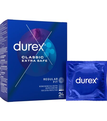 Durex Extra Safe, 24 stk., Kondomer til par, En maksimal fornøjelse uden risiko. Kondomer Durex Extra Safe giver dig en pålidelig beskyttelse. Takket være den kan du nyde de intime øjeblikke uden bekymring. Egenskaber: forstærket side til en maksimal sikkerhed ekstra glidemiddel til en behagelig følelse tilpasser sig både små og store bredder det er nemt og hurtigt at rulle den på Ingredienser: naturlig gummilatex ...