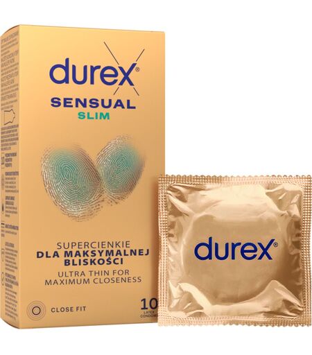 Durex Sensual Slim, 10 stk., Kondomer til mænd, Du kan også få en intens oplevelse ved samleje med beskyttelse. De ultratynde kondomer Durex Sensual Slim sikrer maksimal komfort og øget følsomhed. Egenskaber: en behagelig, glat overflade øger følsomheden under sex yder maksimal komfort og en intens oplevelse yder beskyttelse mod uønsket graviditet og kønssygdomme med reservoir naturgummi med glidecreme Brugsvejledning: Følg brugsanvisningen. ...