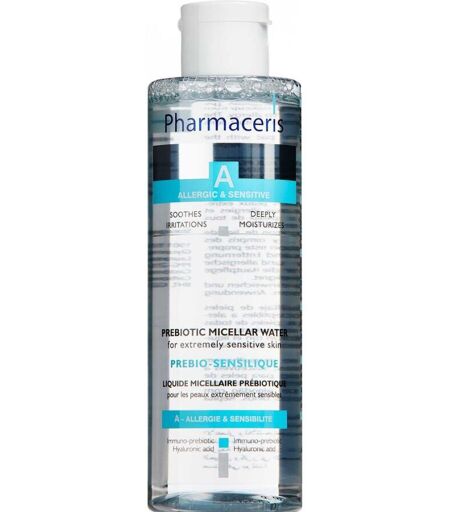 Pharmaceris A, PREBIO-SENSILIQUE er en prebiotisk micellær væske, som fjerner make-up og andre urenheder uden at irritere huden og øjnene. Den innovative immunprebiotiske formel understøtter udviklingen af den naturlige mikrobiologiske barriere i huden, der er ansvarlig for dens immunitet. Væsken giver intensiv hydrering og prebiotisk beskyttelse for følsom og allergisk hud. Den fugtgiver, lindrer og beroliger irritationer samt gendanner hudens balance. Dosis og anvendelse Pharmaceris A, PREBIO-SENSILIQUE ...