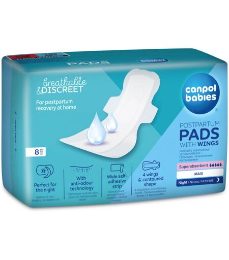 Canpol babies Postpartum Pads With Wings fødselsbind Nat 8 stk.