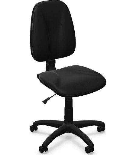 Emma kontorstol i sort Emma stolen er en solid og billig kontorstol, som er perfekt til det mindre behov på både privat- og arbejdskontoret. Funktionel, komfortabel og prisrigtig. Det ergonomisk hvælvede sæde sikrer et godt blodomløb - og det justerbare høje ryglæn giver mulighed for til enhver tid at opnå den korrekte siddestilling. Hjulene har en sikkerhedslås, som gør at hjulene ikke drejer med mindre man sidder på stolen. Højdejusterbar med gas. Samles let på få min., med skruetrækker. 5 stjernet sikkerhedsfod. Højde fra 44 - 57 cm. Testet og godkendt til 110 kg Farve: Sort. ...