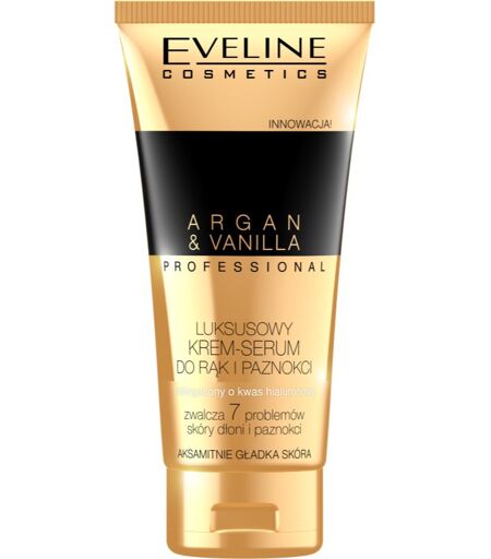 Eveline Cosmetics Argan&Vanilla, 100 ml, Neglepleje til kvinder , Cremen Eveline Cosmetics Argan&Vanilla fugter huden på dine hænder perfekt og sikrer den nødvendige næring. Egenskaber: fugter og nærer huden efterlader huden fin og blød beskytter mod ugunstig påvirkning fra miljøet genopbygger Brugsvejledning: Påfør cremen på hænderne efter behov og masser, indtil cremen er trængt ind. ...
