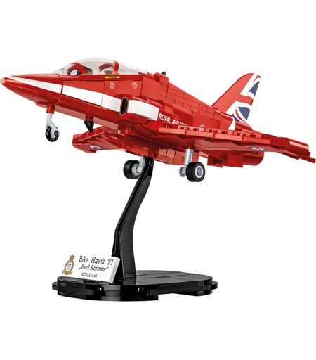 BAE Hawk T1 er et britisk træningsfly, der også bruges som let jagerfly. Denne klemmeklodsmodel fra COBI er designet af Royal Air Force''s kunstflyvningshold. Red Arrows-emblemet har 9 fly i "Diamond"-formationen, som er blevet holdets varemærke. Modellen er udviklet ud fra 389 elementer i målestoksforholdet 1:48. Den har et vingefang på 19,5 centimeter og byder på et hængslet cockpit og aftagelige hjul. Der er også pilotfigurer, der kan placeres i cockpittet. ...